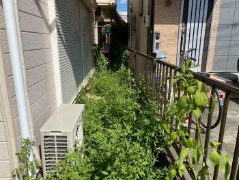 西東京市にあるアパートにて草刈り作業を行いました。