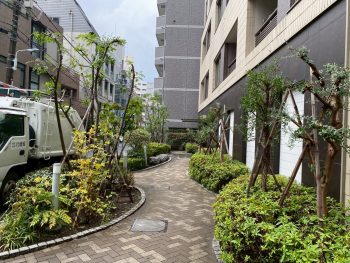 台東区にあるマンションにて植栽管理作業を行いました。