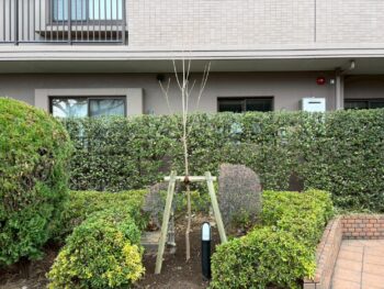 西東京市にあるマンションにて枯損木の植替え工事を行いました。